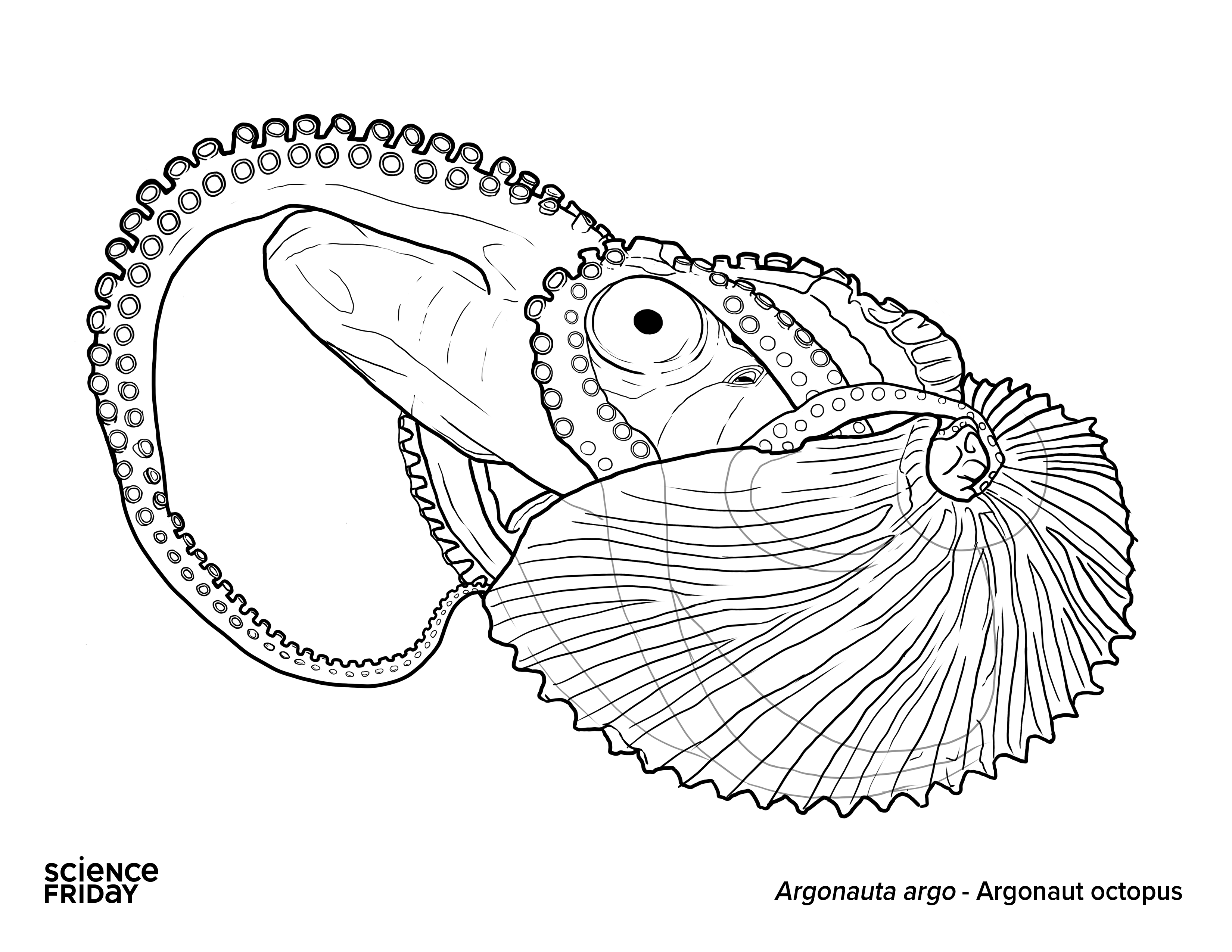Cephalopods are fascinating animals—not just because of all the scientific research they produce, but also for having a show-stopping visual appeal. This year, as a part of Science Friday’s ongoing commitment to building connections between science and the arts, we’re bringing you a digital coloring book that’ll knock all eight of your socks off.