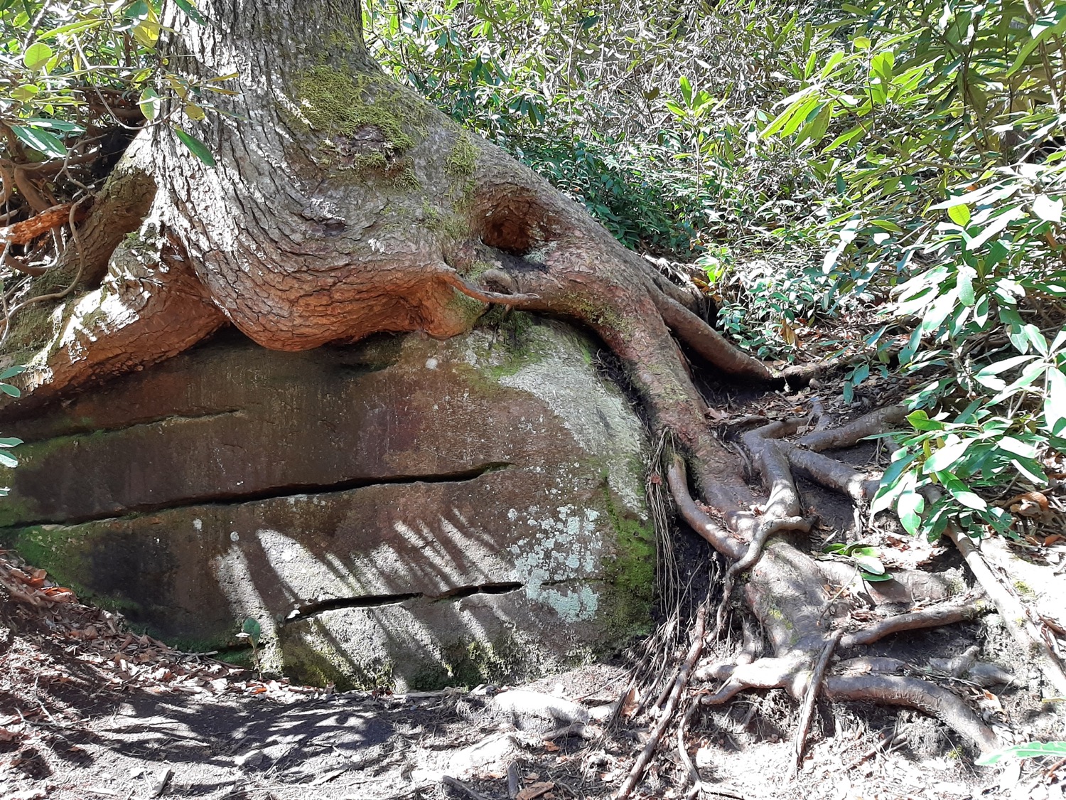 “Just spent two days in the DuPont State Forest in North Carolina (including six waterfall hikes), and the route to the last one (Wintergreen Falls) took us through an eerie boulder “village”: massive car-sized rocks covered in bright green moss. They were so ALIVE in our human-less woods… everything looked like a facial expression and the smell of sanctuary…. That’s EARTHY!”